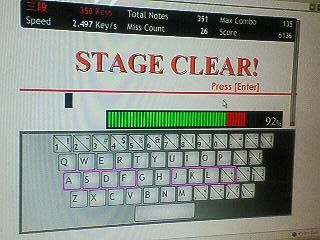 | HEADLINE 2007/12/08(Saturday) 2007年12月8日(土曜日) 更新したコンテンツの、ご案内 IIDX ID登録公開ページ : 1名様、IIDX ID、登録公開情報、更新しました。 TYOM*2さんより、IIDX IDの更新申請を受けましたので、IIDX IDのページを更新しました。 ■ Take the NextageさんのTYPING FLASHゲーム、体験記。 ※画像は製作中のものにつき、完成版とは異なる場合があります。 Take the Nextageさんが制作している、TYPING FLASHゲーム。 前々から少しずつ拝見していましたが、ちょっと遊べるくらいにまで作られているようでした。 少し体験してみました。 体験の段階では、段位別に指定のキー(アルファベット)で選択した後、スペースキーで、タイピングゲームがスタート。 タイピングの課題になる単語は、音ゲーに出てくる、ジャンル名・曲名・アーティスト名などからのようです。 段位ごとに打ち込まなければいけない文字数などが決まっていて、文字打ちミスは当然ゲージが、減ります。 beatmaniaのように、ゲージが赤い部分のまま、すべての単語を打ち終えると、段位合格となります。 まだ、完成型ではないようなので、最終的にどのようなものに仕上がるのか、少し楽しみだったりしますね。 (管理人) BEAT SQUARE TOPに、もどる |