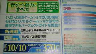 | HEADLINE 2008/10/05 (Sunday) 2008年10月05日(日曜日) 更新したコンテンツの、ご案内 時事ニュース : 2008年10月5日までの時事ニュースを、追記しました。 昨日は音ゲーライブイベントのために秋葉原→両国といってみた訳ですが、JR秋葉原駅を出たところの街角で、秋葉マップを配布していましたので、1枚ゲット。 ![]() 今までこういったものが配布されているのは知らなかったので当地には割と足を運ぶほうで、とても参考になりました。 こちらのサイトで、秋葉原にきたときのオススメコースガイドなども掲載されていたりします。 さらに、昨日のライブイベントからの配布物からの今後のライブ告知情報がありますので、当サイトでも取り上げておきます。 ■ ゲーム1週間:新型機「ニンテンドーDSi」公開 ドラクエ9は09年3月に延期 今週は来週開幕する東京ゲームショー2008を目前にして、大きなニュースがいくつか。 やはり新型DSとドラクエ次回作につきますね。 ■ 音ゲーバンドフェスティバル2008!、2008年11月1日(土曜日)、秋葉原CLUB GOODMANにて開催予定(情報参考元:592さん) 592さんのところでも、同様情報が掲載されていました。 開場17:00 開演17:30 チケット料金 予約:1500円 当日:1800円、となります。 ■ ファクトリーレコーズの音楽集団“I'VE”、4年ぶりの武道館コンサートが開催決定(情報元:ファミ通.Com) コンサート開催は、2009年1月2日を、予定。 さらにその前日の2009年1月1日元旦には、日本武道館敷地内特設野外テントで、商品グッズ関連の販売および出演者によるトークイベントなどが実施予定。 チケットについては全席指定で5800円(税込み)で、詳細はリンク先のページを確認してみてください。 コンサート関連サイトは、こちらです。 (管理人) BEAT SQUARE TOPに、もどる |