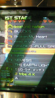 | HEADLINE 2008/04/14(Monday) 2008年04月14日(月曜日) 本日のコンテンツの更新は、ありません。 その代わり、情報を少しばかり追加と、恒例の雑記。 ★ ライオンズクラブ国際協会主催ライブ『CSF II』、閉幕! dj TAKAさん、kors kさん、Ryu*さん、good-coolさん、PINK PONGさん、dj nagureoさんといった、BEMANIシリーズの楽曲を制作している蒼々たるメンバーが出演したライブということもあり、とても内容の濃いものになったようです。 そのあたりは、ぷろとら.comさんのサイトで、詳しいセットリストなどの情報がアップされていますので、興味がありましたらどうぞ。 ■ 音乃さんのブログにて、『トップランカーのレポート』(4月11日付けブログ) YOSHITAKAさん、L.E.D.さん、それと、Des-ROWさんの舞台裏での写真が公開されていますね。 もう1点の写真は、出場されたランカーの選手のみなさんでしょうかね。 ■ 雑記 IIDX MENTAL MELTDOWN Single (HYPER)・・・・・・・正規 Monky Dance Single (ANOTHER)・・・・・・・ランダム Y31 (ANOTHER)・・・・・・・ミラー 3曲、HARDで、なんとか倒せました。 2 hot 2 eat (ANOTHER)がFAILEDしているハズなので、Single★9未HARDクリアが、残り9曲になった(ハズ)。 うーむ、★9フォルダHARDクリアランプ埋めは、もう、管理人の今の腕では、頭打ちかもしれません; それと★11 Blind Justice Single (ANOTHER)、正規ノマゲクリア、スコアランクAA到達のオマケつきという、好調すぎるくらい当たりまくりでした。 ![]() (管理人) BEAT SQUARE TOPに、もどる |