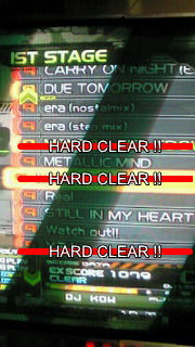 左上 : ★10 EUROROMANCE Single (ANOTHER) 正規譜面+HARDクリア 右上 : ★10 Ubertreffen Single (HYPER) MIRROR譜面+HARDクリア 左下 : ★10 EXE Single (ANOTHER) 正規譜面+HARDクリア 右下 : ★10 e-motion 2003 Single (ANOTHER) RANDOM譜面+HARDクリア EUROROMANCE(ANOTHER)、EXE(ANOTHER)、e-motion 2003(ANOTHER)は、HARDクリア難易度★2クラスなので、★10のHARDクリア指標のランクでも比較的簡易的な故に、まだまだ登竜門レベルで序の口クラスなのが、なんとも奥が深いところ。 Ubertreffen(HYPER)が、HARDクリア難易度★5クラスだが、クリアレートが比較的に高い故なのももあるのか(不明)、管理人、なぜかMIRROR譜面でクリアしております。 逆にRANDOM譜面だと、ハズレ譜面が多くアタリ譜面にありつけなかったのが、やや失敗。 HARDクリア難易度は、beatmaniaIIDX SP☆9〜12攻略サイトさんの情報を参考にしました。 (管理人) BEAT SQUARE TOPに、もどる |