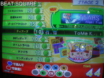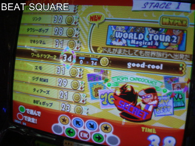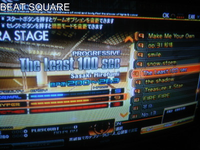 | HEADLINE 2008/05/08(Thursday) 2008年05月08日(木曜日) 更新したコンテンツの、ご案内 音楽ゲームデータベース : 【AC版】pop'n music 16 PARTY♪ 曲リストまとめページ、更新しました。 自己主張系の画像置き場が煩雑になってきてしまっているので、近々、統合の意味でプロフィールのページ、リニューアル計画。 ★ TЁЯRA公式サイト、リニューアル ある特定のタイミングで、このサイトに訪れると、限定アイテムがGETできます! +キーワード+ 日曜は夜、平日は昼〜夕方のどこか… ■ 電人K友情のDISC2!! その7(情報元:DIVISION L.E.D. ) 恒例の電人Kリミキサーさん達の紹介は、今回で最終回。 ■ ポラリス(情報元:kors k officialblog) 電人Kリミックス楽曲「THE SHINING POLARIS」の制作秘話。 ■ 今度はあの子♪ブログパーツっ(情報元:音乃のもっと知りたいビーマニ情報通ブログ) 昨日、発表になったポップンブログパーツ情報の新着分。 ■ pop'n music 16 PARTY♪、ヒント15とか ヒント13は、出現条件不明。ヒント14は、リザルト数字系が条件、かなり条件が厳しいので、ヒント15のみ、確認。 ついでに前々回確認できなかった、ヴィジュアル4が解禁されたのでプレイしてきました。 SECRETフォルダは、これで、全曲9曲、解禁 ■ 雑記その1 HIROSHIさんがホースライダーズの成果をHPにうpするなら おまけで俺のもいかが? (メールの原文まんま 掲載いたしました。) 個人のステータスなので、ここの公開で不都合があったら、連絡ください。画像板に移すなり編集しますんで。>TAKEさんへ エアグルーグ(GREATカード キラカード)引くとは、あなどれないな。 自分は、いまジョッキークラス中級にいるんで、マッチングできる日を楽しみにしてますよ〜 ■ 雑記その2 beatmaniaIIDX 15 DJ TROOPERS Doubleプレイ HARDクリアフォルダ送り 追加! すべて正規譜面、順不同 以下すべて難易度表記★8 Presto DP (HYPER) Burnin' The Floor DP (ANOTHER) END OF THE CENTURY DP (HYPER) Halfway Of Promise DP (HYPER) Buffalo DP (HYPER) ※真ん中の画像は、END OF THE CENTURYを、HARDクリアする前に、撮影したもの。 (管理人) BEAT SQUARE TOPに、もどる |