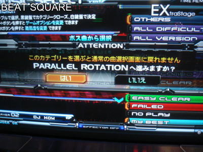 | HEADLINE 2009/10/30 (Friday) 2009年10月30日(金曜日) 音楽ゲームデータベース : 【AC版】 beatmaniaIIDX 17 SIRIUS 曲リストまとめページ、更新しました。 次回の更新予定日は、明日、10月31日(土曜日)、簡易更新を予定しています。 ↓2009年10月30日12:10更新↓ システムまわり、トリビア関連、そして新要素のPARTYモードのページなどを追加しました。 PARALLEL ROTATIONフォルダにおいての鍵マークの獲得条件を、更新しました。 ※複合条件のものは、同時に条件を満たす必要があるようです。 ※下記条件は、SINGLE PLAYのものです。DOUBLE PLAYの場合は条件が☆1ランク分、下がります。 NORMAL譜面 ☆4・・・・・・・正規譜面+HARDオプション+ランクAAA以上+FULL COMBO ☆5〜☆6・・・・・・・正規譜面+HARDオプション+ランクAA以上 ☆7・・・・・・・ノーマルゲージ(ASSISTは×、EASYは、○)以上+ランクA以上 HYPER譜面 ☆6・・・・・・・正規譜面+HARDオプション+ランクAAA以上+FULL COMBO ☆7〜☆8・・・・・・・正規譜面+HARDオプション+ランクAA以上 ☆9〜☆10・・・・・・・正規譜面+ノーマルゲージ(ASSISTとEASYは、×)以上+ランクA以上 ANOTHER譜面 ☆8・・・・・・・正規譜面+HARDオプション+ランクAAA以上+FULL COMBO ☆9〜☆10・・・・・・・正規譜面+HARDオプション+ランクAA以上 ☆11・・・・・・・正規譜面+ノーマルゲージ(ASSISTとEASYは、×)以上+ランクA以上 ☆12・・・・・・・ノーマルゲージ(ASSISTは×、EASYは、○)以上+ランクA以上 (管理人) BEAT SQUARE TOPに、もどる |