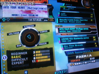 | HEADLINE 2009/04/24 (Friday) 2009年4月24日(金曜日) 音楽ゲームデータベース : : 【AC版】DanceDanceRevolution X 曲リストまとめページ、更新しました。 : 【AC版】GuitarFreaks V6 & DrumMania V6 曲リストまとめページ、更新しました。 例によって4月25日(土曜日)のサイト更新は、お休み&次回サイト更新は4月26日(日曜日)を予定しています。 本日は、情報リンクメインで、データベースの更新です。 3y3sの読みは、やはり「アイズ」なんだそうで、「3」の部分もやはり「Eの鏡文字」だったとか。>Ryu☆さんのコラムより ■ アーケード版ギタドラV6、EXTRA RUSH LV2にアップ(情報提供者:TAKEさん) 新アンコール曲 → Drivin Shooter 赤G 96 赤B 74 赤OP 97、とのこと。 情報タレコミありがとうございます! ■ beatmania IIDX 16 EMPRESS オリジナルサウンドトラック、本日4月24日、コナミスタイル先行発売 同時に、本日よりサントラ発売動画「DOLCE.危機20連発!!」第2弾が、配信開始。 不在配達票を置き去りにされながらも、佐川再召喚に成功!?して聴きごたえ抜群!な、EMPRESSサントラが、届きました〜♪ まだ、開封もできていませんが、これからヘビーローテで聴いてみようと思います。 気がついたところで、なんか、クリアファイルの端っこが、曲がっていた。(笑) 梱包上の問題でしょうね、こればかりは。 ★ KONAMIレースゲーム『GTI Club Supermini Festa!』イベント『第1回スーパーミニフェスタ』に、セリカのデコ車登場! GOLIさんとか音乃さんのほうでも、アナウンス中。 イベントは、期間限定開催となっています。 ★ アーケード版DanceDanceRevolution X、DANCEDRILL COURSE LV10が、解禁。(情報参考元:BEMANI Wiki) 本日4月24日(金曜日)付けで、解禁されました。 SINGLEコース Fascination MAXX (CHALLENGE)→PARANOiA (HADES) (CHALLENGE)→Healing-D-Vision (CHALLENGE)→Trigger (CHALLENGE) DOUBLEコース PARANOiA (HADES) (EXPERT)→Pluto Relinquish (CHALLENGE)→Healing-D-Vision (CHALLENGE)→Trigger (CHALLENGE) ★ pop'n music ししゃもぬいぐるみ、5月31日までに500個以上の追加注文なら、再生産決定! また、さらなる、ハードルが!!! <<注文しなくては(汗) ■ GuitarFreaks V6 & DrumMania V6 、公式スペシャルサイト、更新。(4月24日付) NEWS・ミュージック・フロムスタッフの各コンテンツが、更新され、EXTRA RUSH 「LEVEL2」が発動です。 (管理人) BEAT SQUARE TOPに、もどる |