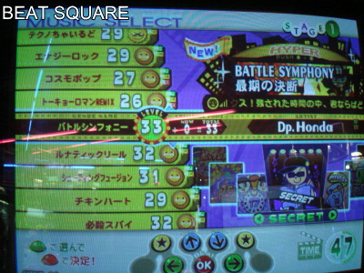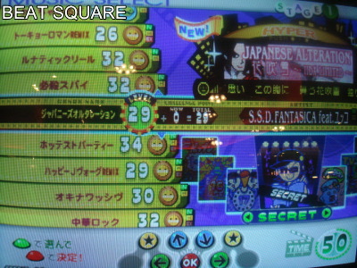 | HEADLINE 2009/05/12 (Tuesday) 2009年5月12日(火曜日) 最近、IIDXしていて、冥の選曲率が高くなってきた管理人です、こんばんは。 あっ、、HYPER譜面で、RANDOMをつけて両手ワシャワシャやるのが楽しく感じてきたような、こないような・・・・・・・ スコアは出ませんが、何とか段位平均は上回ってきたみたいで、何か押しづらくて難しい曲なんだけど病み付き気味です。 さて、3日間は西の地へ、ぶらぶらっと遠征行脚してまいります!? 次回のサイト更新は、5月15日(金曜日)を、予定してます。 ■ アーケード版ギタドラV6、EXTRA LV2、ENCORE曲(情報提供者:KT.STYLEさん) 画像板から投稿いただきまして、ありがとうございます。 ■ KONAMI♪MUSICフルにて、「beatnation summit -beatmania IIDX premium Live-」ビデオクリップ追加配信! キング・オブ・IIDXことdj TAKAさんによる「V -conclusion-」のときの模様がビデオクリップ形式で、配信開始。 (管理人) BEAT SQUARE TOPに、もどる |