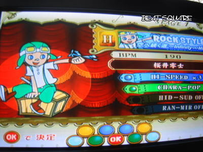 | 曲 名 1 | 曲 名 2 | アーティスト名 | 登場キャラクター | b.p.m表記 | 9ボタン NORMAL |