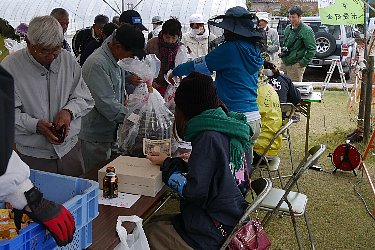毎年11月3日に岐阜県恵那市串原地区で”全国ヘボの巣コンテスト”が開催されており,今年で第23回目になります.最近は出かける機会がありませんでしたが,13年振りに,”ヘボの巣コンテスト”の会場へ出かけてみました.過去3回は車で行きましたが,今回はJR→明知鉄道→コミュニティバスを乗り継いで出かけました.会場は相変わらず熱気にあふれていました. 公園がきれいに整備され,会場は以前行った時よりもユッタリとした配置になっていてノンビリと過ごすことができます.難点は網室から逃げ出した成虫が会場を飛び回っていて,時々体に止まることです.そのため刺傷被害もしばしば発生しており,救護所のお世話になる人も少なくありませんでした. |