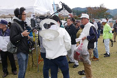 | 巣の販売開始,値段は1Kg当たり9,000円也. | テレビ局の取材を受ける優勝者.巣の大きさは5.62Kg. |