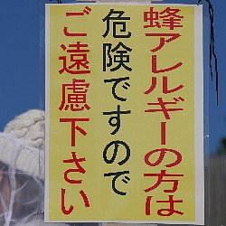 今年は出品されたハチの巣箱が140を越え大盛況でした.また,当日は快晴、無風の暖かな日でしたので,逃げ出した成虫が会場周辺を飛び回り,食事を取るのも大変でした.会場には”蜂アレルギーの方は危険ですのでご遠慮ください”という掲示も出されており,雰囲気の盛り上げに一役買っていました. 刺傷被害もあちこちで発生し,救護所は大賑わいの様子でした.救護所には毒液を吸い出す道具(インセクト・ポイズン・リムーバーとエクストラクター)が用意されており,塗り薬も虫刺され用の軟膏とキンカンが用意されていました.ハチ刺されにキンカンというのはあまり感心しませんが,結構塗ってもらっている方も多いようでした.私は当然軟膏を選んで塗ってもらいました. 一緒にいて刺されてコウジ菌氏も私も幸い重篤な症状がでることもなく,無事会場を後にすることができました.その後の経過も順調で,少し痒みがある他は大して腫れることもなく順調に経過しています. |