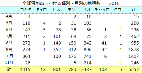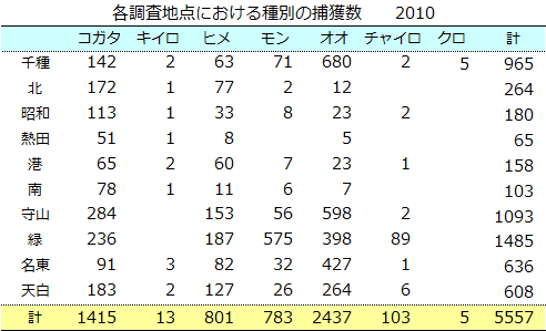 誘引トラップによるスズメバチ類捕獲調査 (10定点) 2010年の調査結果