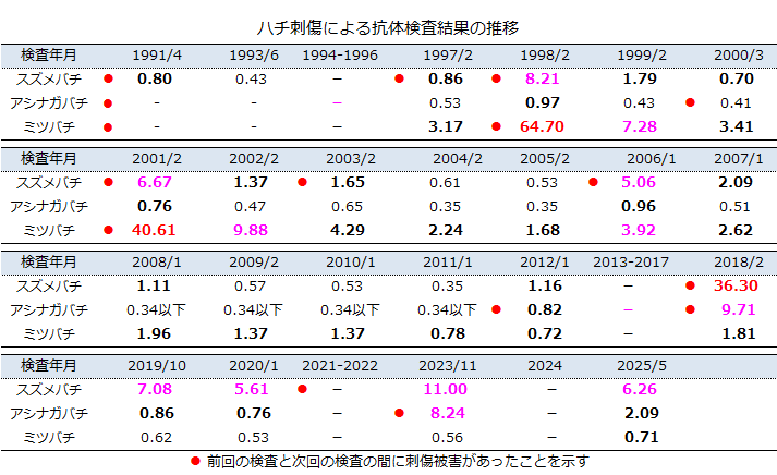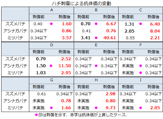 |ハチ毒の成分と作用|ハチ刺されとアレルギー反応|ハチ刺されと抗体価の変動| |