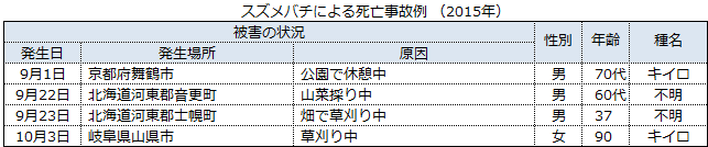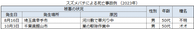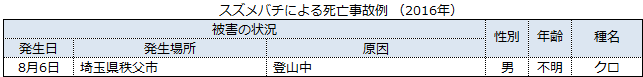 最近16年間のスズメバチ刺傷による死亡事故一覧 |