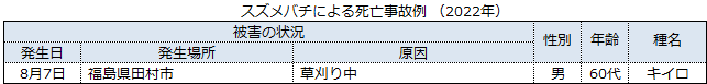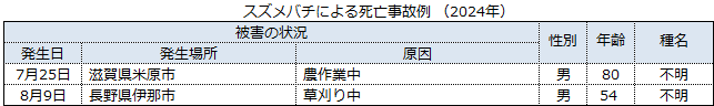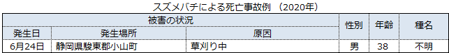 |スズメバチ刺傷による死亡事故一覧|キイロスズメバチ刺傷による死亡事例| |