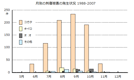 | TOPページ > スズメバチによる刺傷被害 > 刺傷被害の発生時期と原因 | |