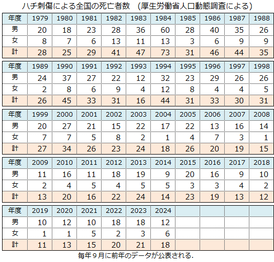 | TOPページ > スズメバチによる刺傷被害 > ハチ刺されと死亡事故 | |
