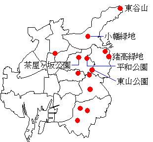 スズメバチの発生量は年次変動が大きく,効果的な駆除対策を実施するためには発生量の予測が望まれていますが,まだその方法は確立されていません.生活衛生センターでは1989年からスズメバチ類の越冬状況調査を実施し,越冬数と発生量の関係について調査してきました.調査は11月から翌年の3月にかけて,市内の公園や緑地の雑木林に散在する朽ち木や倒木を対象に行いました. |