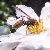 | TOPページ > スズメバチの生物誌 > 花蜜を舐めるスズメバチ > サザンカ | |