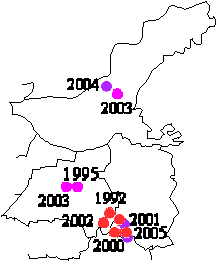 |2005年|2004年|2003年|2002年|2001年|2000年|1995年|1992年|