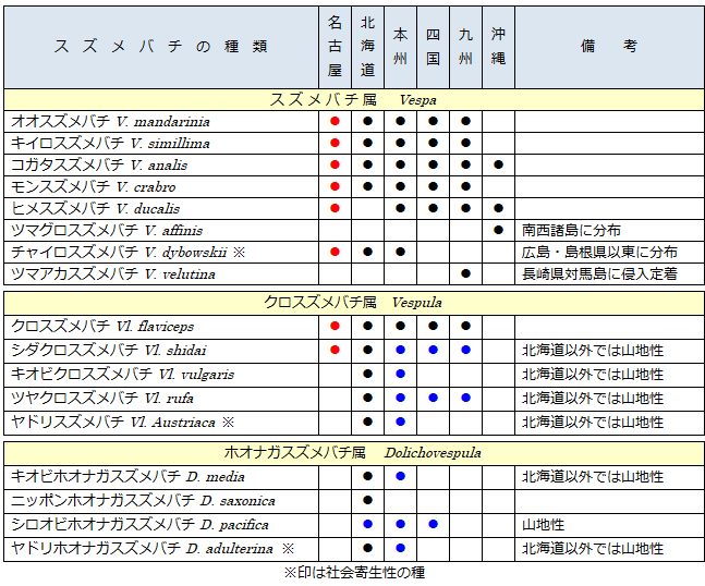 |世界のスズメバチ事情|日本のスズメバチ事情| |