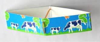(1)材料は洗って、乾燥させた牛乳パック、 資源ごみとしてリサイクルに出す牛乳パックです。