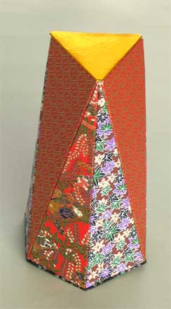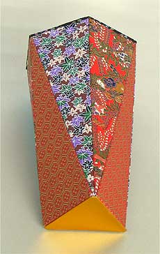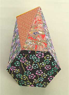 @ 9枚を貼り合わせ平らになっている側板を下部は6角柱、上部は3角柱に成型する