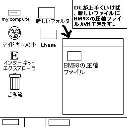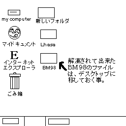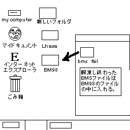 そして、Lhasaを使って同じく解凍を終えたら、そのファイルをBM98の本体の入っているファイルに入れます。(G)