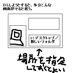 予め、新しいファイルを作っておいて(@)、DLさせるデータの保存先を