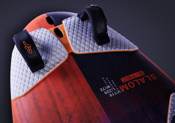 | PURE COMEPETITION SLALOM BOARD Full Control / Full Speed / Full Throttle >>表彰台に立つための3要素が全てそろいました。 2026 JP SLALOM は、PWA Competition での高速度ジャイブ 幅広いコンディション下での正確無比のコントロール性能を実現。 軽量ライダーにもうれしい高い安定性能。 フルオーバーパワー状況でも確実なコントロール性能を提供。 トップスピードへ瞬く(またたく)間に加速。 S-TEC JP Australia のRACE BOARDに採用されているS-TEC構造は 非常に軽量ながら高い剛性を実現しています。 綿密に計算された設計思想により実現しました。 >>NO PAINT/塗装無し >>NON SLIPコーティングはスタンディングエリアのみ >>コンパクトパッド/EVAと接着剤を最小限に。 >>繊維を個別に準備してラミネートするカスタムラミネートプロセス 以上のS-TEC構造は、PWAに照準を合わせています。 新型 SL72・・異次元へ >>高度に完成されたHULL 流体力学構造、 改良されたレール&デッキシェイプ >>より高い水上ポジションでチョッピ―コンディションを高速度で 難なく走り抜け理想的なジャイビングへ確実に乗り手を誘導します >>そして "S-TEC構造"です。 印象的な外観、一段進んだ軽量化、ネジレ剛性、早期プレーニング、 扱いやすさ、超高速度 etc,etc を実現しました。 表彰台目標、自身の限界への挑戦etc あらゆるライダーに、パワー/俊敏さ/信頼性の 完璧なバランスを提供します。 >>熾烈な競争を続けるスラロームワールドで勝利し続けるために JP Australia は日夜絶え間なくSlalom ラインナップを進化させています。 >>ザ・スラローム72は驚異的なスピードへUP-GLADE より高い水面上のPOSITION へボードをトリムアップさせる事で ボトムの水面に接する面積を減少させ即ち抗力を減少させることで ラフ海面でも驚異的なスピード/安定感/操作性を発揮します。 >>特にノーズエリアにおいてHULL流体構造を最大限に効率化しました ジョイントBOX前方のレイル・デッキシェイプを改良することで デッキ上のエアーフローをスムーズにし、結果 難しい海面コンディションでもボードの安定感を効率を実現しました。 >>そしてテールにかけてもアウトラインとデッキシェイプを、特に バックストラップ周辺をスムーズに改良しました。 結果、ボードと一体感を、心地よさを感じられるようになりました。 >>これらのUP-DATEはジャイビング性能、高速での ジャイブコントロール、特にマーク周辺での競争力を高めています。 JP AUSTRALIA SLALOM LINE UPの共通項 1)滑らかなスクープロッカーラインと ノーズからテールへと変化するV字フロー 即ちマストベース前方で顕著、 からストラップ間で徐々に細くテールに向かって広がります。 これにより抵抗を低減、高くてルーズな水面ポジションをキープしつつ 高スピード下での確実なジャイブを提供します。 2)HIGH APEX RAIL SHAPE ボードリフトを促し、早期プレーニング/加速/安定したジャイプを実現 3)ダブルステップカットアウトを備えたテールタックライン ボードコントロールと水面リリース/スピードを最大化します。 4)入念に設計されたストラップポジション ジャイブ時の効果的なパワーポジションと迅速な足の出し入れ。 5) コース全体の平均速度の向上 特に他社と最も大きな差を付けられるジャイビングに注力 ターン中ずっと速度を維持しより速くターンを抜けます。 6) 安定感のあるロックされたライディングポジション わずかな力で瞬時に最高速度へ到達そしてそれの維持。 驚異的な初期プレーニングPOWER ワイドテールはフィンへのレバレッジ効果を高め、 結果パワーと操作性が向上 7) 滑らかなデッキ形状が快適 ライダーはエネルギーを温存し長距離走行でも限界に挑戦できます。 全てのサイズでテールストラップ間にパッドを追加。 これによりライダーはボードとの一体感覚をより感じられます。 8) サイズごとの理想的なボトムテールカットアウト 水面からのリフトと操作性能を生み出すレールライン長との完璧な融合 大きなサイズではカットアウトを他サイズより前方スタートにして カットアウト曲線をテールに向かって強調しました。 よって効率的なウォーターリリースとフィン周辺の均一な水流を作り出し パワーの持続とトップスピードのための 安定したフィンプレッシャーが生まれます。 Slalom 62.5/66/72/76にはダブルステップカットアウトを採用しました。 文字通り2つのカットアウトの高さが異なります。 9) レールボリューム ボード中央部からノーズにかけてレイル頂点を少し上げることで レールボリュームを増し、高速を維持したままジャイブを抜けられます。 10) 窪みの中のジョイントボックス"Close The Gap" ジョイントの回転軸を下げることで 究極ジャイビングへの挑戦が可能になりセイルフット部を下げることで 最も効率的なエアーフローを生み出します。 PWA RACING完璧SET-UPの6つの核心 1)デュアルテイルアウトライン 2)ノーズからテールまで絶妙に変化するボトムVフロー 3)コンパクトコンセプト/即プレーニング 4)薄いノ