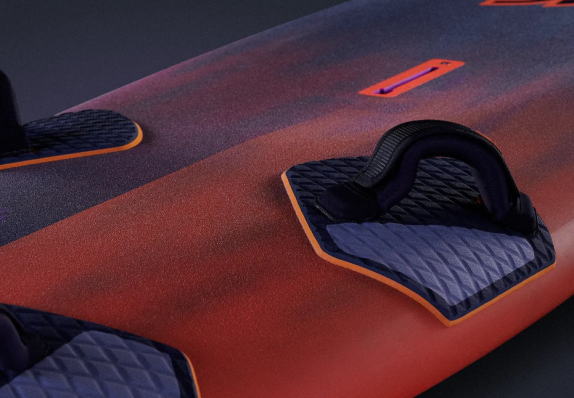 | TECHNOLOGY FEATURE 1) S-Glass テクノロジー 2)デッキとボトムに高密度PVC補強 3)Full Biax Carbon デッキ 4)ダブルカーボン補強ストラップエリア 5) スタンディングエリアをUD-CARBON Xラッピング補強 6)PARABOLIC S-Glass フルラッピングレールバンド 7)UDカーボン補強された高密度PVC製のOmegaボトムストリンガー 8)ダブルフットストラッププラグ 9)セイルポジショニングスケール付きジョイントボックス 10)フィンポジショニングスケール付き4-SLOTBOX |