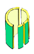 厚さ方向に半分に割る、半分であるが外側の部分(皮の付いている)が内側よりも